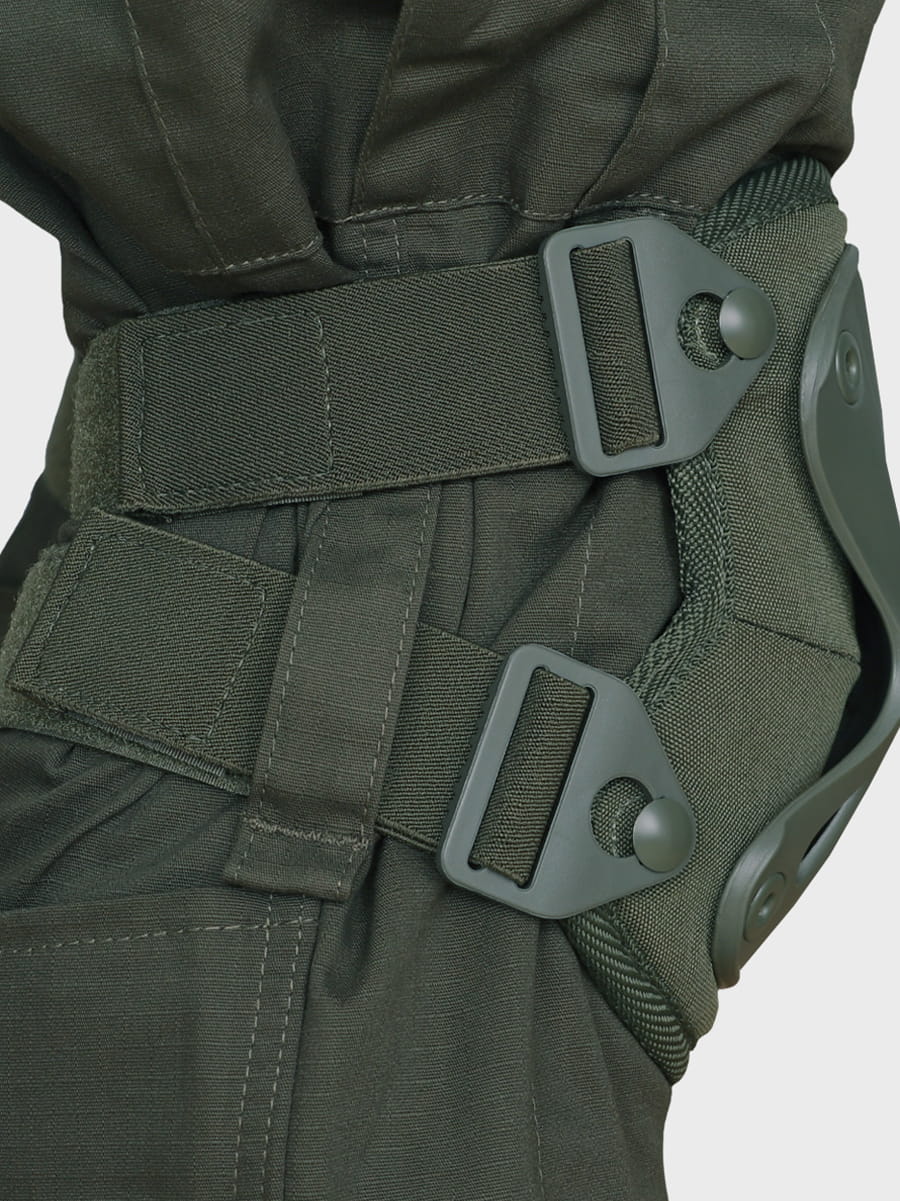 - Szlufki do mocowania ochraniaczy na wysokości kolan (zapobiega zsuwania nakolanników)