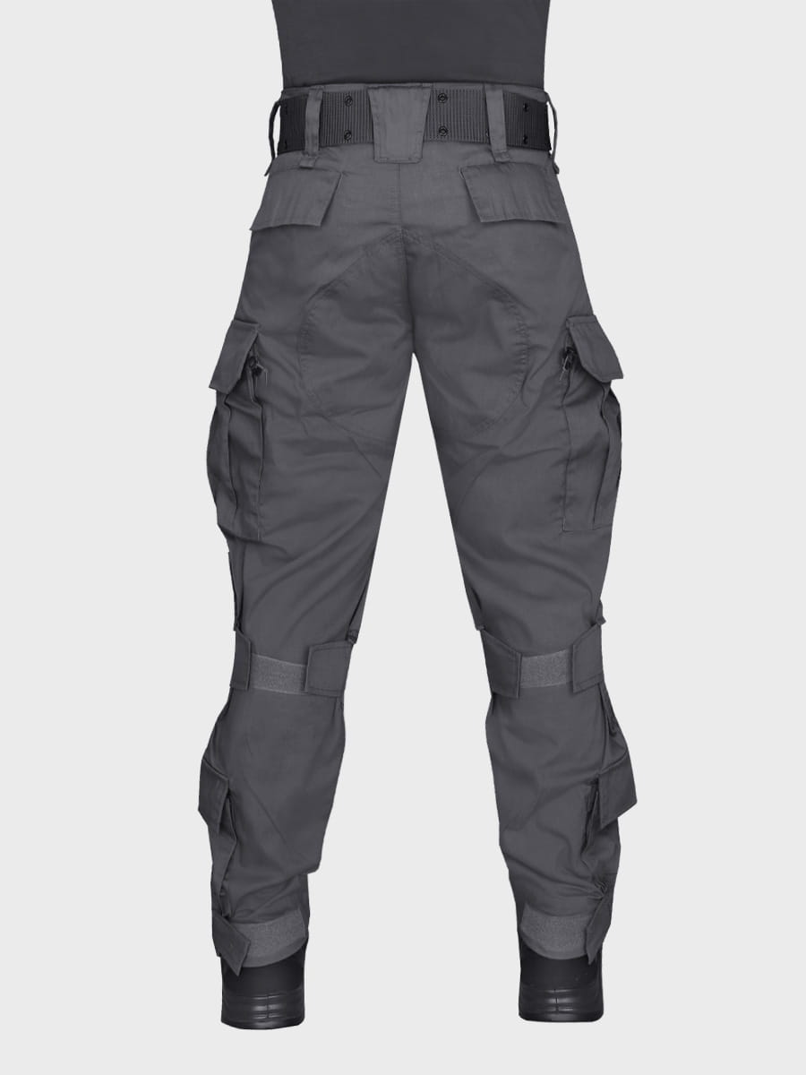 Duża liczba kieszeni (łącznie 8, w tym cargo, biodrowe i tylne) pozwala na wygodne przechowywanie niezbędnych przedmiotów.