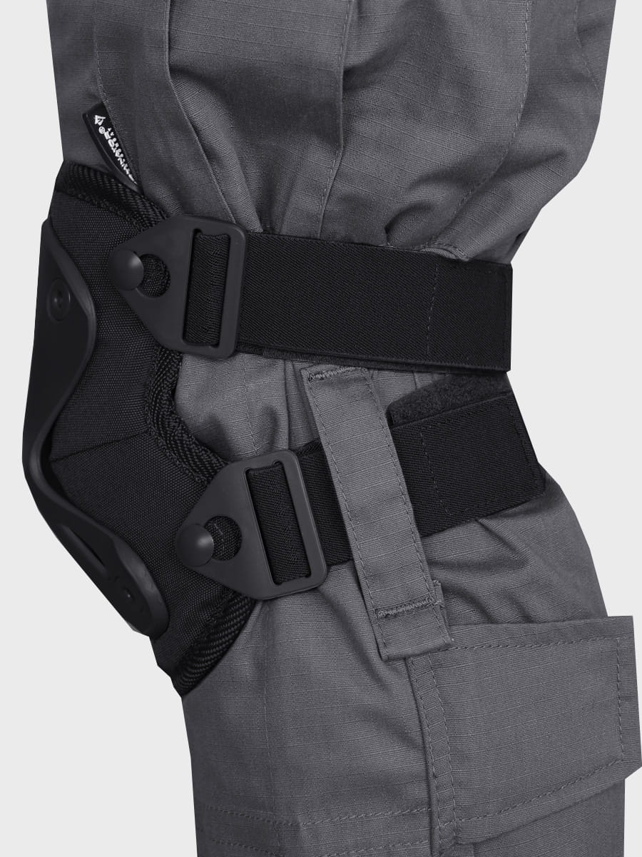 - Szlufki do mocowania ochraniaczy na wysokości kolan (zapobiega zsuwania nakolanników)
