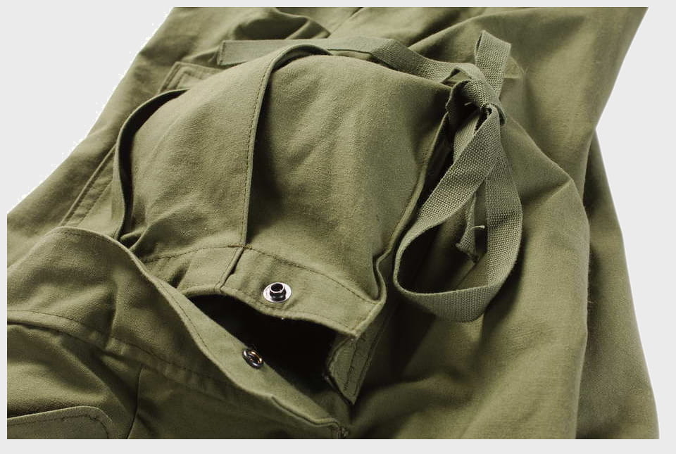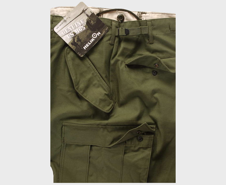 M65 wyposażono w 7 praktycznych kieszeni: dwie przednie, dwie tylne, dwie obszerne kieszenie cargo na nogawkach - wszystkie zapinane patkami z napami, oraz jedną kieszonkę ukrytą wewnątrz. Kieszenie udowe cargo posiadają troki umożliwiające montaż sprzętu.
