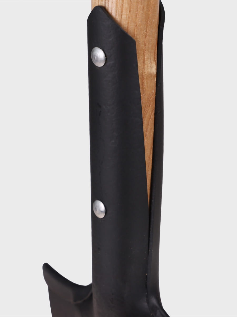 Głownia wykonana z czernionej stali węglowej odpornej na uszkodzenia, rękojeść z twardego drewna jesionowego zapewnia pewny i wygodny chwyt.
