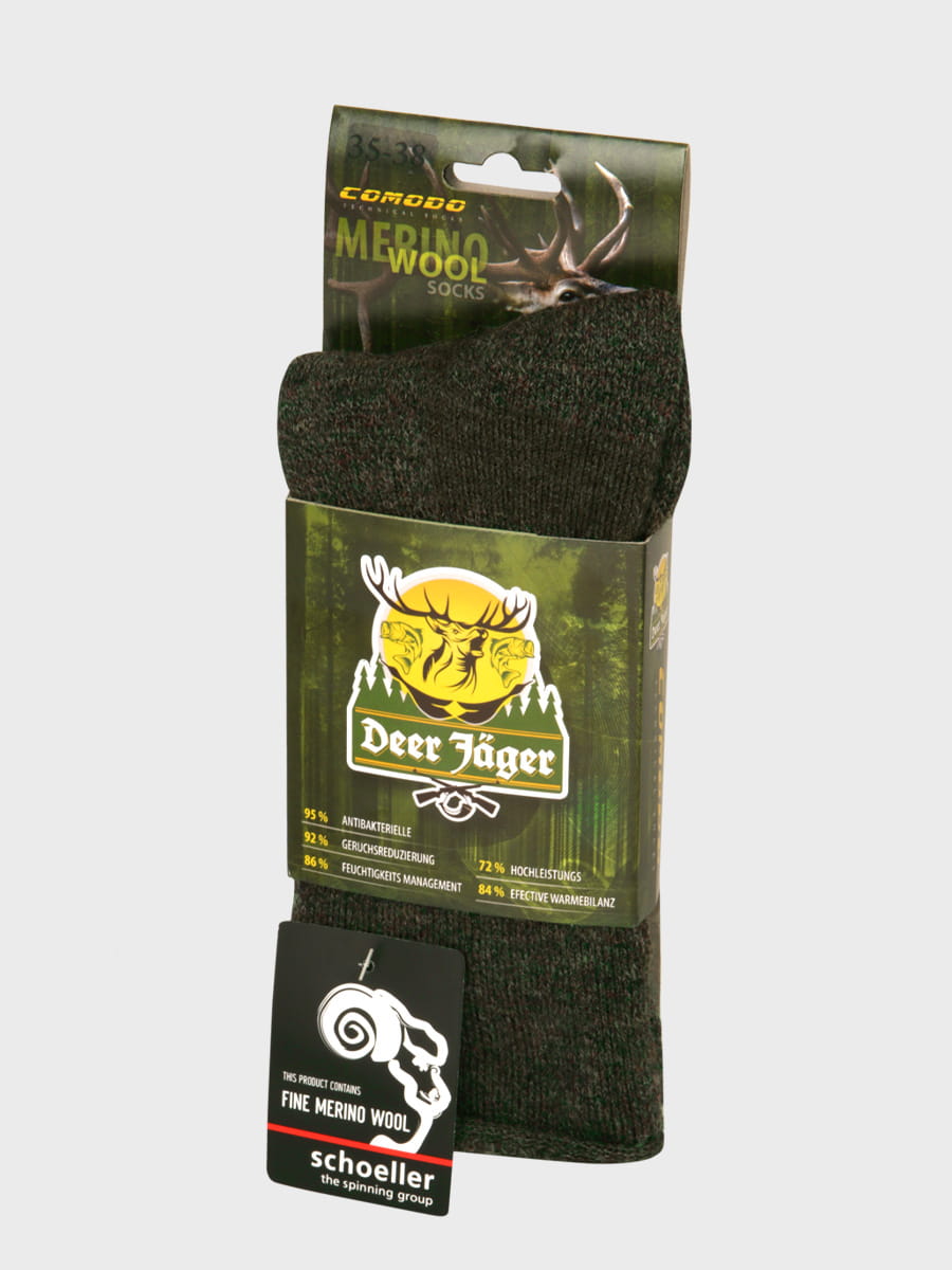 Długie, Skarpety Myśliwskie polskiej firmy COMODO, doskonałe do wszelkich aktywności: uprawiania sportu, turystyki, survivalu, działań militarnych, a także do codziennego noszenia. Fason ten zapewnia ochronę przed zimnem także w łydki, oraz możliwość założenia skarpet pod wysokie buty, kalosze lub wodery.