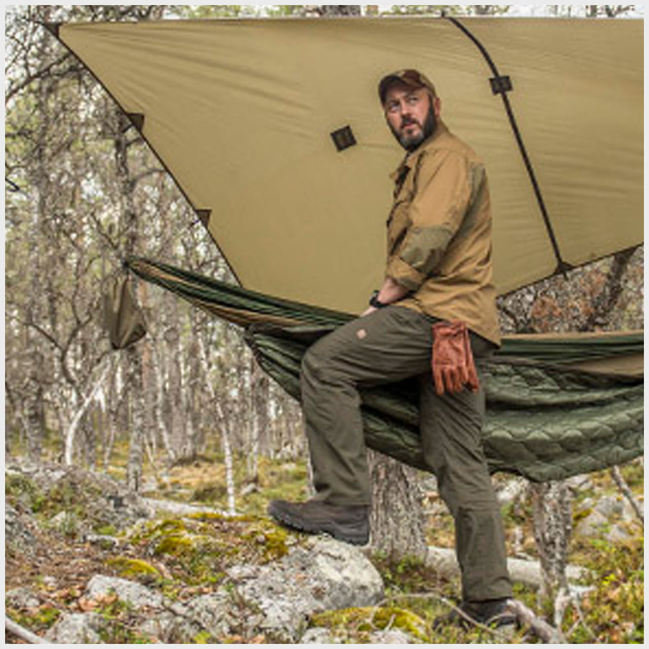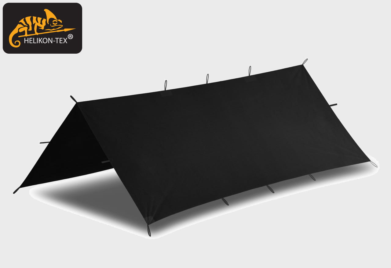 UWAGA! Przedmiotem oferty jest płachta biwakowa SUPERTARP Small w kolorze Czarnym. Pozostałe elementy służą wizualizacji funkcjonalności.
