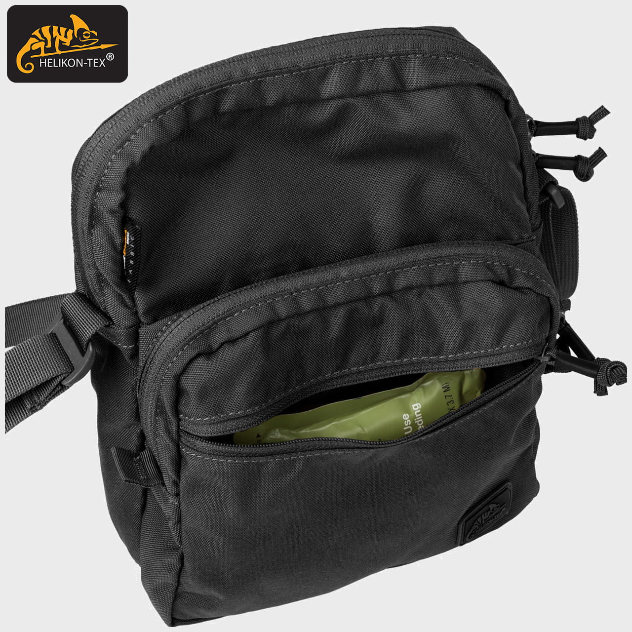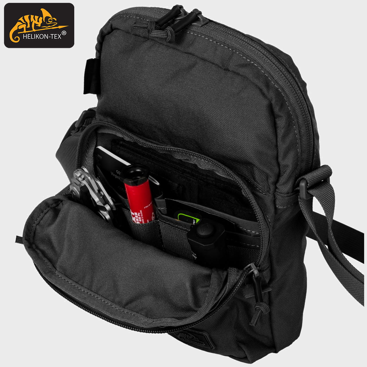 UWAGA! Przedmiotem oferty jest TORBA EDC COMPACT SHOULDER BAG w kolorze Czarnym. Pozostałe elementy służą wizualizacji funkcjonalności.
