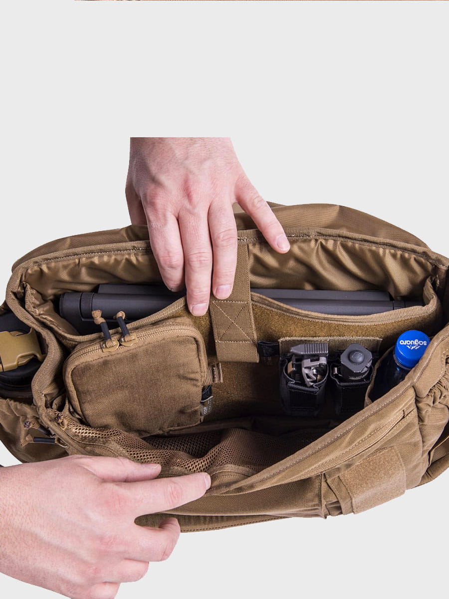 - Universal Carrying Strap z możliwością wypięcia i zastosowania z innymi modelami toreb Helikon (Urban Courier Bag Large®, MK2 Wombat®)