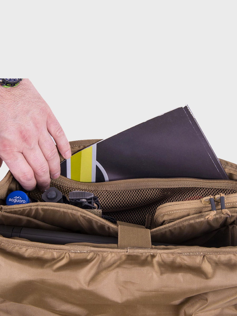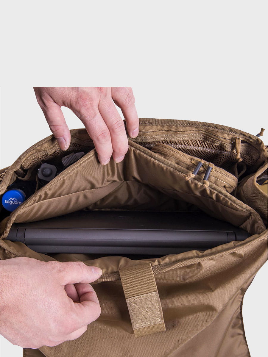 Torba posiada pojemne, funkcjonalne kieszenie i przegrody o praktycznym rozmieszczeniu. Osobna, wyściełana, zamykana na rzep kieszeń na laptopa, skutecznie go ochroni i odseparuje od pozostałych przedmiotów. Zasuwana na suwak kieszeń pod klapą zawiera panel velcro kompatybilny z systemem insertów (Versatile Insert System®). Kieszeń w klapie pozwoli schować wyjmowane często przedmioty, a panel velcro może posłużyć personalizacji. Po zewnętrznej stronie torby, od strony ciała, umieszczono dyskretną kieszeń zamykaną na suwak. Nie widać jej na pierwszy rzut oka, a dostęp do niej jest ograniczony dla potencjalnego złodzieja, gdy torba przylega do jej użytkownika.