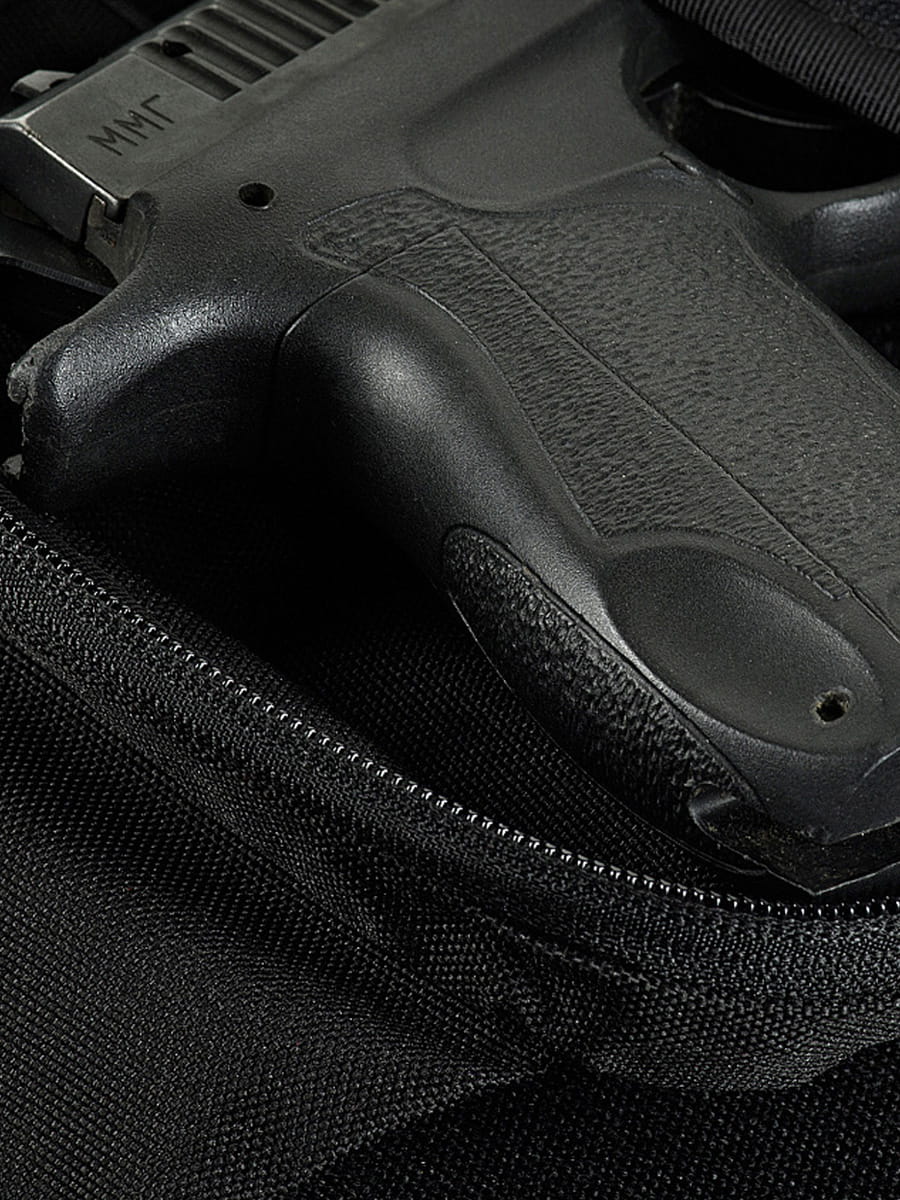 Wewnątrz torby zamontowana jest uniwersalna kabura zapinana na rzep (co pozwala dopasować ją do większości modeli pistoletów).