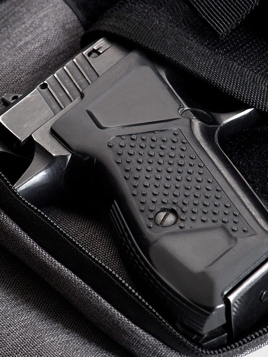 Wewnątrz torby zamontowana jest uniwersalna kabura zapinana na rzep (co pozwala dopasować ją do większości modeli pistoletów).