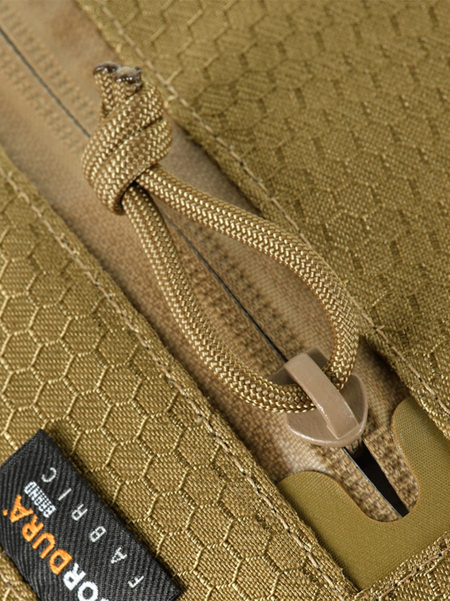 Saszetkę wykonano z Cordura Hex oraz Cordura 500D/Cordura 1000D. Ta mieszanka sprawia, że jest jeszcze bardziej wytrzymała, mocna oraz łatwa w czyszczeniu. Zamki błyskawiczne i sprzączki pochodzą od firm YKK i Woojin - światowych liderów w produkcji akcesoriów.