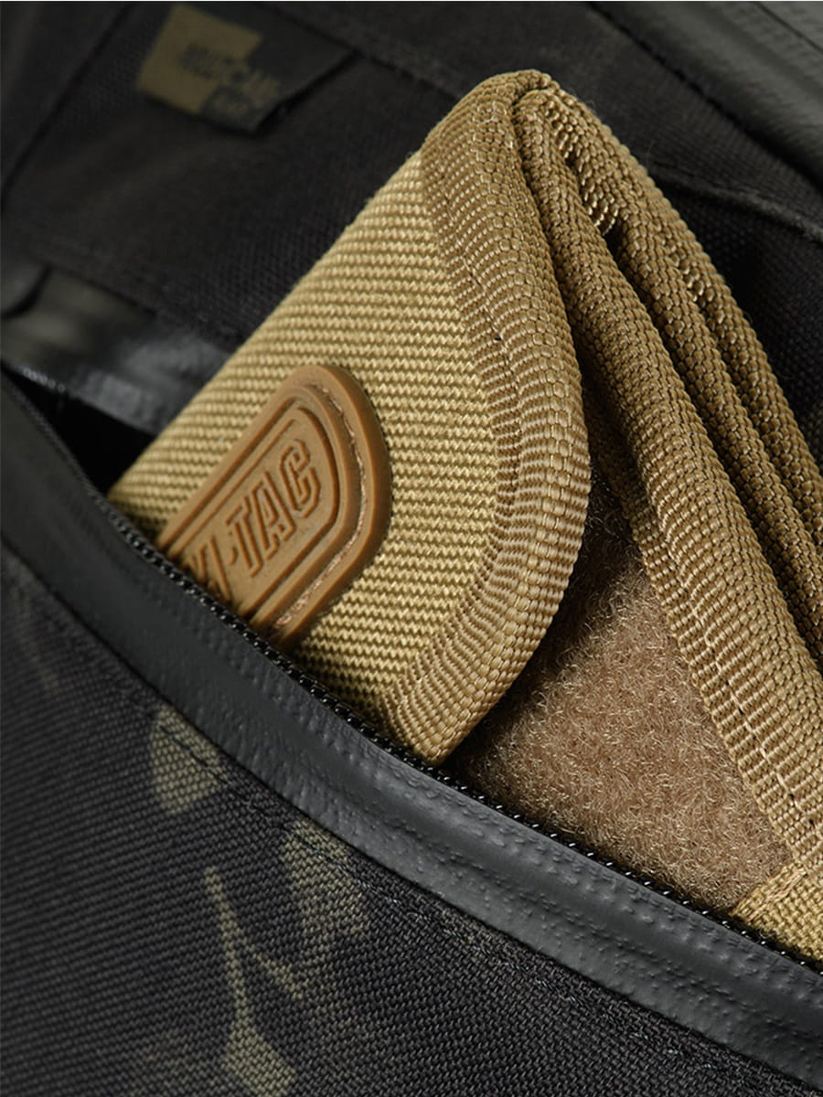 Saszetkę wykonano z Cordura Hex oraz Cordura 500D/Cordura 1000D. Ta mieszanka sprawia, że jest jeszcze bardziej wytrzymała, mocna oraz łatwa w czyszczeniu. Zamki błyskawiczne i sprzączki pochodzą od firm YKK i Woojin - światowych liderów w produkcji akcesoriów.