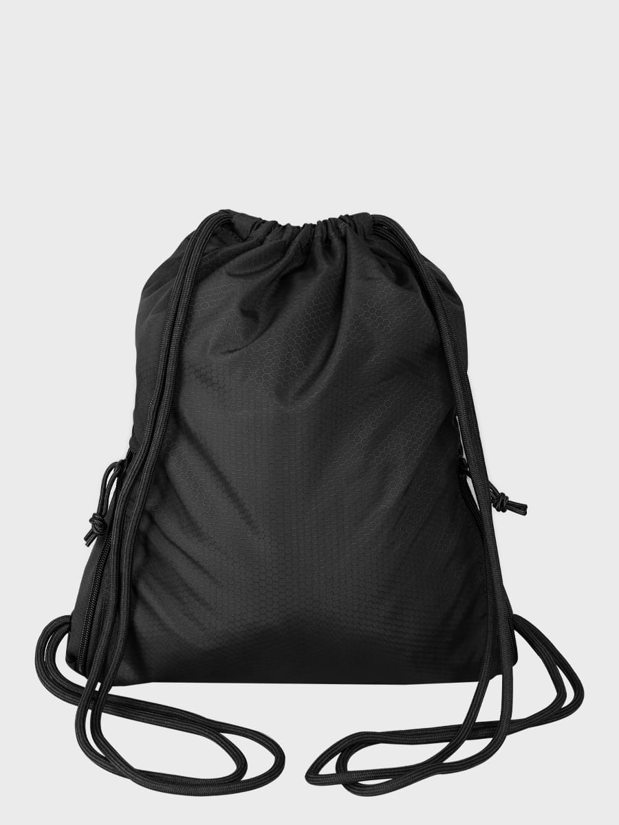 Taktyczny worek ze sznurkami, które służą do zamykania oraz pełnią rolę szelek.