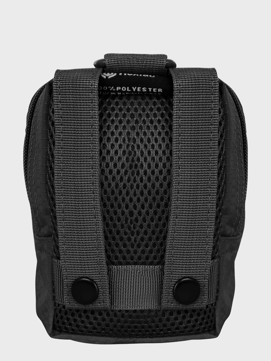 System mocowania kieszeni oparty jest na dwóch trokach zatrzaskowych, co umożliwia przypięcie kieszeni na dowolnym panelu MOLLE kamizelki, plecaka czy pasa.