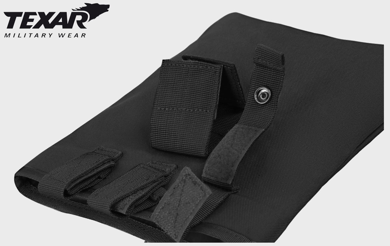 Zasobnik MB-01 polskiej marki Texar, który może pełnić funkcję worka zrzutowego na amunicję lub podręcznej torby na wyposażenie.