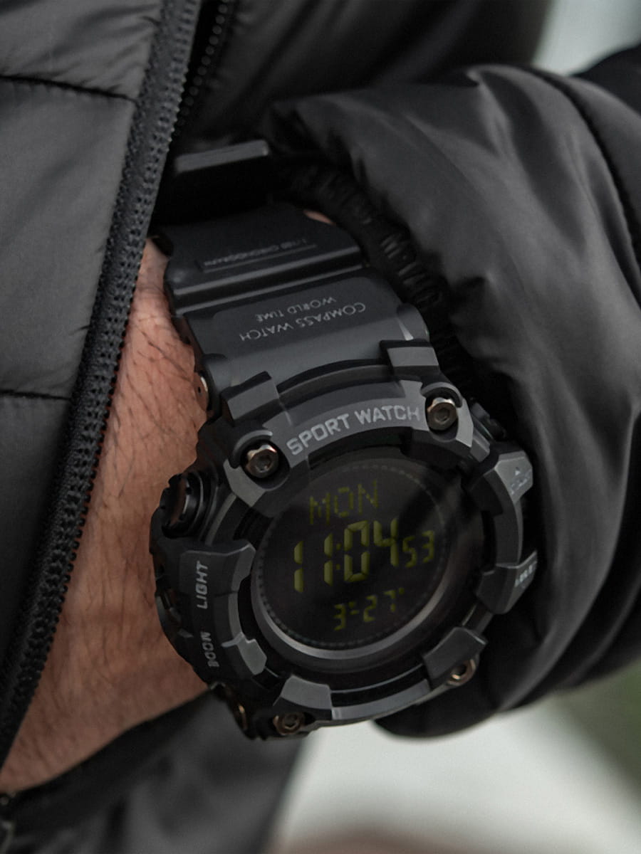 Cyfrowy zegarek męski 2037 od marki M-TAC to idealne połączenie sportowego stylu, funkcjonalności i wytrzymałości. Duża, czytelna tarcza, wytrzymały pasek z PU oraz wodoodporność czynią go doskonałym wyborem do codziennego użytku i aktywności sportowych.