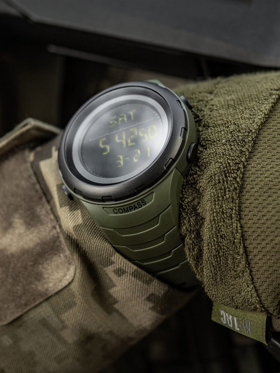 UWAGA! Przedmiotem oferty jest M-Tac Zegarek Taktyczny 2166 w kolorze Army Green. Pozostałe elementy służą przedstawieniu funkcjonalności.