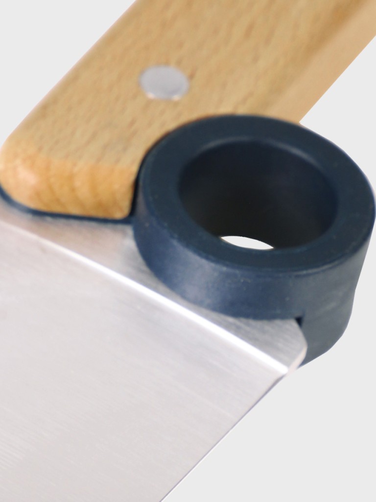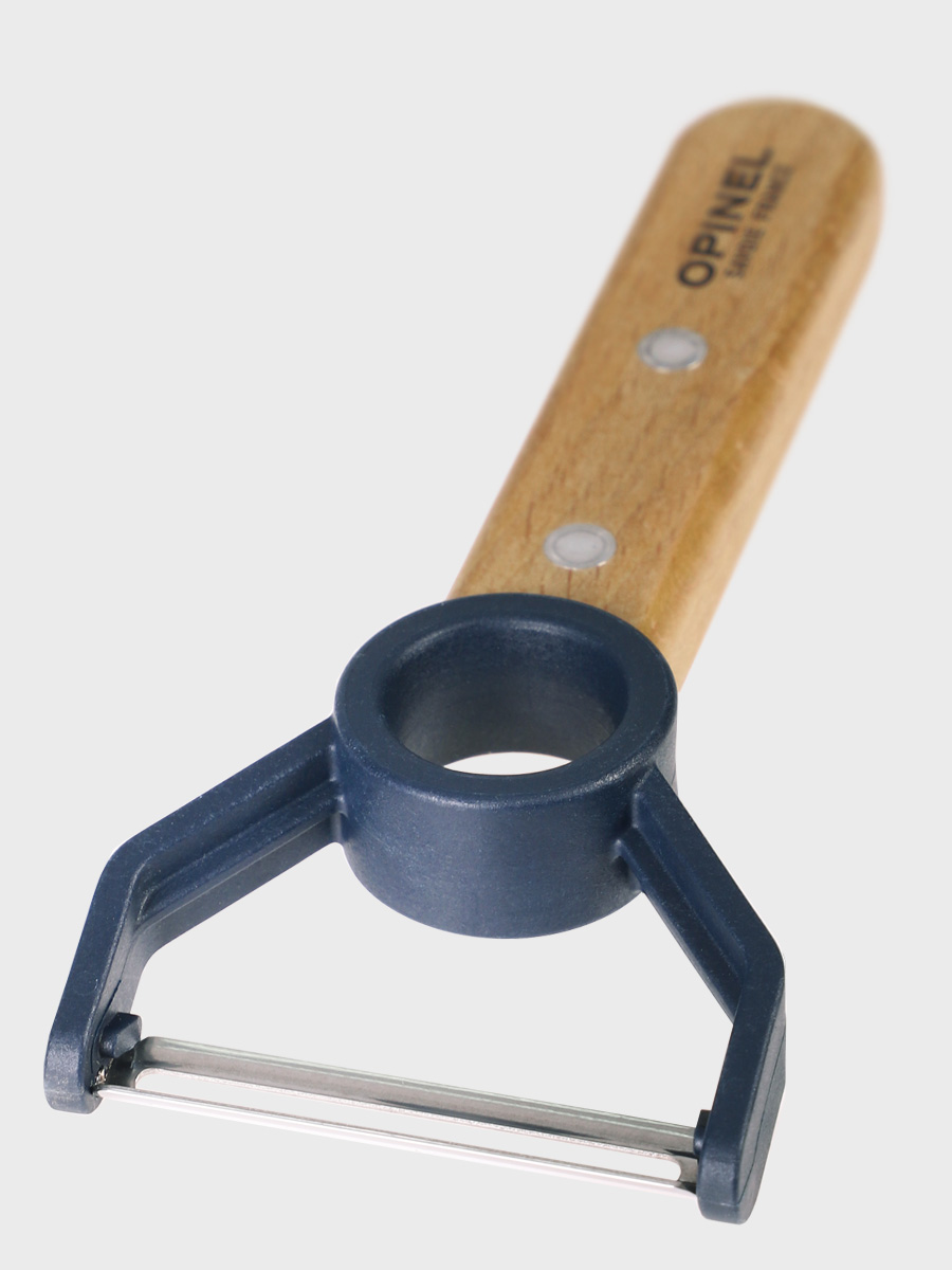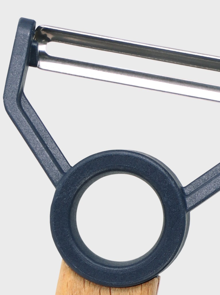 - Specjalny pierścień na ostrzu noża i na rękojeści obieraczki