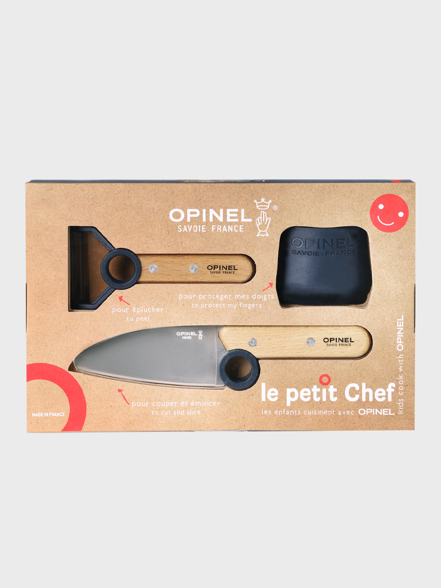 Zestaw La Petit Chef marki Opinel to idealne rozwiązanie dla małych pasjonatów gotowania. Pozwala w bezpieczny sposób wprowadzić dziecko w świat kuchni i nauczyć podstawowych technik krojenia oraz obierania. Przemyślana konstrukcja narzędzi wspiera prawidłowe ułożenie palców i zwiększa kontrolę nad ruchem podczas pracy.