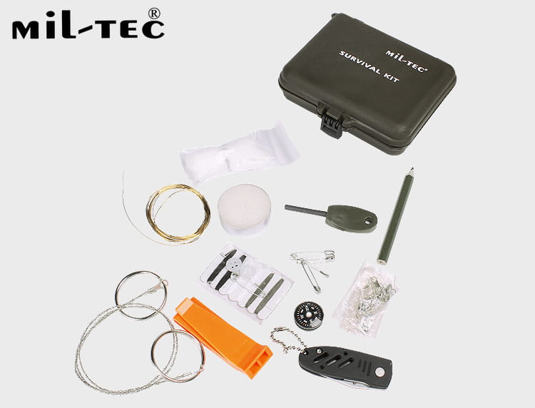 Zestaw ratunkowy MIL-TEC Survival Kit Zestaw ratunkowy-survival marki Mil-Tec. Idealny zbiór najpotrzebniejszych rzeczy do przeżycia w sytuacji kryzysowej.